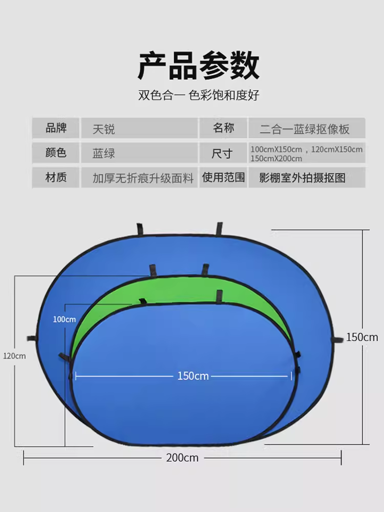 荐 绿布抠像背景布板外拍双面可折叠便携抠图蓝幕户外室内视频拍摄特效扣图